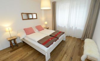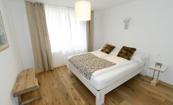The apartment’s interior is tastefully decorated with a lot of wood furnishings. You will be enchanted by its stylish, modern Alpine look. The apartment has 3 bedrooms and 2 bathrooms, one with shower/toilet and the other with bath/toilet. The modern kitchen, equipped with an oven, steamer and dishwasher and the dining/living room are combined in a single open-plan space. A Nespresso coffeemaker as well as fondue and raclette sets are available. No pets allowed. Laundry facilities available.