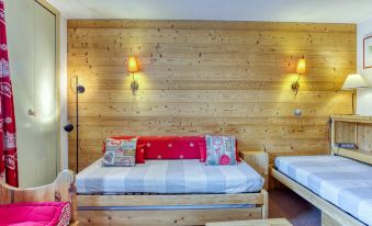 Beautiful residence "Chanteneige La Croisette". In the district of la Croisette, in the centre of la station, directly by the skiing area. In the complex: lift, storage room for skis, central heating system. Motor access to the house. Public parking 20 m. Bus stop "ARRET la croisette" 200 m. Sports centre, skisport facilities, slopes 20 m, ski rental 15 m, ski school, ski-kindergarten 50 m. Well-known ski regions can easily be reached: Domaine des 3 vallées. Please note: the photograph shows a typical example. Additional accommodations can be booked. "Chanteneige 301", 2-room apartment 45 m2 on 3rd floor. Spacious, very comfortable and beautiful furnishings: large living/dining room with 1 bed (90 cm, length 190 cm), 1 pull-out bed (2 pers. 2 x 90 cm, length 190 cm), TV (flat screen). 1 room with 2 beds (90 cm, length 190 cm). Small kitchen (oven, dishwasher, 4 ceramic glass hob hotplates, kettle, microwave, electric coffee machine, raclette grill). Bathroom, sep. WC. Heating. South-west facing position. Covered balcony. View of the mountains. Facilities: washing machine, baby cot. Internet (WiFi, extra). Please note: non-smokers only. Smoke alarm. 73257004534SB