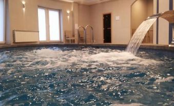 There is a lobby bar and a restaurant on site. Guests can also visit the SPA center with a swimming pool and sauna. The hotel has a conference room for business events. Parking is available for guests using a private car.