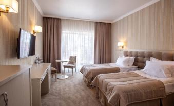 For accommodation, guests are offered Standard, Family, Junior Suite, and Suite rooms. Each of them is equipped with everything necessary for a comfortable stay: TV, air conditioning, refrigerator, wardrobe. A hairdryer is provided in the private bathrooms.