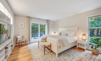 We loved our stay at this adorable house nestled in the woods! The location was great, 10 minutes or less to many of our favorite spots in Door County. The beach that was just a short drive from the house was not crowded, and would be great for swimming and paddle boarding. 2 king bedrooms, plus a bunk room and additional guest room is not easy to find in a rental. The house was super clean, comfortable, and well stocked. The hosts were kind and helpful. Thank you for a great week!