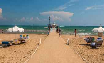 Villa with private garden and parking, set in a quiet pine forest 300m from the beach and near Pineta’s center. Modern ground and first-floor apartments feature large terraces, A/C, washing machine, dishwasher, microwave, safe, and satellite TV.