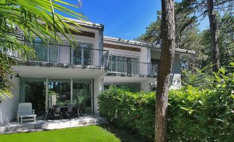 Stunning villa with private garden and parking, set in a quiet pine forest 300m from the beach and near Pineta’s center. Modern ground and first-floor apartments feature large terraces, A/C, washing machine, dishwasher, microwave, safe, and satellite TV.