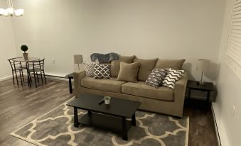This one bedroom apartment has recently been renovated with the guest in mind. This space provides you with everything you’ll need for your stay with a refrigerator, microwave, oven, sink, coffee maker, kitchen basics, and eating service for four. The apartment is equipped with high speed internet 50mbps speeds, Roku tv which allows guest to login to their Netflix, Hulu, Disney +, and other streaming services of their choice. Guests will also receive complementary bottled water, assorted K-Cups, soap, shampoo and conditioner. In unit washer/dryer unit.