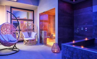 Room was lovely. Terrace with a small garden. Lovely indoor pool. The outside pool was really nice but a bit small . Lovely park for kids. The staff were really nice and friendly. The restaurant was nice with a beautiful view. Would definitely go back