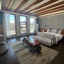 The suite is spacious, with a living room, where the whole family can relax on the sofa.