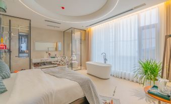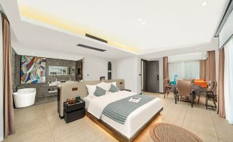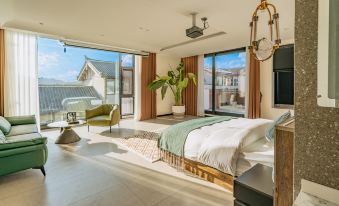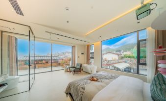 The inn features only 9 exquisitely - designed guest rooms, each with its own unique charm. The rooms are rationally laid - out, integrating modern simplicity with local characteristics, creating a warm and comfortable atmosphere. From the spacious and bright viewing windows, the panoramic view of the Ancient City of Lijiang unfolds before your eyes. When the sun sets, the afterglow drapes a golden veil over the blue - tiled and white - walled buildings of the ancient city. The well - arranged buildings and wisps of cooking smoke blend together, forming a picturesque scene. At night, as the lights in the ancient city come on one by one, the twinkling lights and the moonlight shine upon each other, outlining the charming silhouette of the ancient city, which is truly captivating.