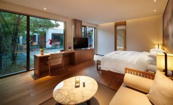 酒店的晚安茶大讚👍洗去了一身疲憊,各種細節都能看出來管理是非常用心,中秋節入住還送了好吃的雲腿月餅,房間走出去有個小院子有秋千,大落地玻璃窗景,有兩個洗手枱,藍牙音響的效果也很棒。