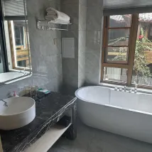 The owner was incredibly warm and welcoming! They even picked us up in their car when we arrived. The guesthouse's courtyard was very peaceful. Our room featured a large bathtub, and disposable liners were provided. It was spotlessly clean, and there was ample hot water. The ancient town itself is a bit off the beaten path, so it wasn't overly crowded, but it's still conveniently close to delicious food options. On our final day, the owner even kindly drove us to a yak hotpot restaurant (we were admittedly a bit too lazy to walk up the hill!). All in all, we had a very comfortable and pleasant stay.