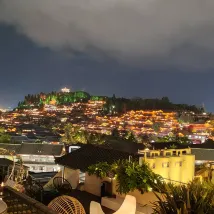 from the rooftop, you can enjoy night scenery of lijiang old town every night