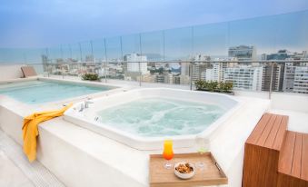 Dazzler by Wyndham Lima San Isidro is a newly built hotel located in the heart of the most important financial area of Lima San Isidro. The hotel offers 136 rooms that can receive up to 3 guests. Suites are located on the highest floors to enjoy the great views of the city. A complimentary buffet is served daily including cold and hot beverages fruits pastries and yogurts. The onsite restaurant 21.02 offers peruvian and international cuisine for lunch and dinner. Relax in our heated outdoor pool in the rooftop or keep with your excercise routine in our fitness center. The hotel is conveniently located close to major companies and embassies and only 12km from Jorge Chavez International Airport.