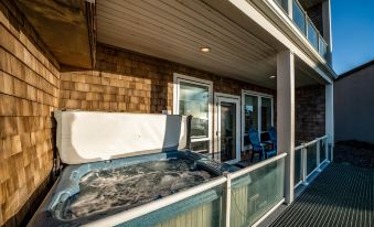 Settle in at this spacious condo by the beach! There's plenty of seating to enjoy the lovely ocean views, even if you'd rather stay in front of the gas fireplace. Of course, there's a great view of the ocean from the private hot tub on this condo's patio. The family-friendly space also includes a full kitchen complete with full-size appliances, a breakfast bar, and quartz countertops. Hardwood and tile-style floors are perfect for sandy toes, and the private washer/dryer will take care of the swimsuits. The beach is just a short walk away - are you ready to relax?