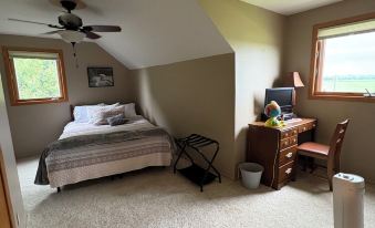 The view is priceless, its nestled on farmland. A mile down the road, you'll discover a one lane red bridge. Go five miles to the south & there lies Pinicon Ridge Park. You can hike the trails, go kayaking, & fish the Wapsipinicon River. Just 30 miles from the Cedar Rapids airport. There is a man-made pond five miles south of the Guest House. Its four acres long. You may fish or kayak this beautiful area. Within the last year, 14 clients complimented the host on how welcoming the place is.About pets:No pets allowed.About checkOut:Check out before 11:00 AM.About children:Children allowed: ages 0-17.About checkIn:Check in after 3:00 PM.About smoking:Smoking is not permitted.About minBookingAge:Minimum age to rent: 18.About events:No events allowed.