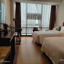 The room is quite big. The two beds are put together and the family of three sleeps very comfortably. We are not afraid that the child will fall off the bed. There is a large floor-to-ceiling window and a small window. The ventilation is very good and it is quite cool. It is good in all aspects.