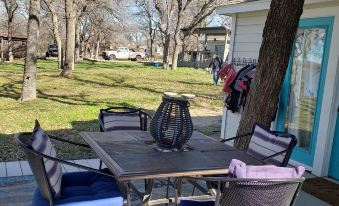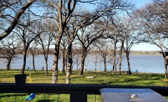Use the fire pit. Fire wood is provided. Roast s'mores. Your own propane grill. Propane provided. Pet friendly. Please pick up your fur babies poo. Washer and Dryer provided. Full kitchen with slide in range, microwave, and dishwasher. Two and a half acres of grass, covered with majestic oak trees. Solar lights in the trees turn our slice of Lake Lewisville into an enchanted realm at night. Come join us. There are two short term rentals here. Our 2 1/2 acre lot has the cottage on the far left and the studio on the far right. Owner lives on site in the main house. Our rentals are positioned for your utmost privacy. Guest should know we are located in unincorporated Denton county. You will drive past some trailer houses and junk cars. We share this with you, so you, might not judge our neighbors. It is very quiet out here.About pets:Pets allowed.20.00 pet fee per pet.About checkOut:Check out before 11:00 AM.About children:Children allowed: ages 0-17.Occupancy four people.About customRules:All events and parties MUST be presented and approved by host. All events are out door events. Both our rentals need to be booked for a large event..No loud noise after 10pm. Must extinguish fire if you use the fire pit. Wear a life vest when using the boats.,Pet deposit 20.00. No smoking in the cottage. Not responsible for weather related outages beyond our control. Tables and chairs available for events...About checkIn:Check in after 2:00 PM.About smoking:Smoking is not permitted.NO smoking of any kind inside the cottage..About minBookingAge:Minimum age to rent: 21.About events:Events allowed.All events must be approved..