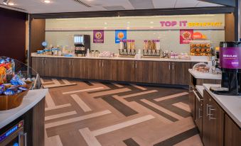 Flavors pop at the free breakfast bar with 30 sweet and savory toppings for donuts, cereal, yogurt and oatmeal. Nip any cravings with drinks, gourmet snacks and single-serve wine and beer in the 24/7 market.