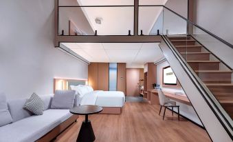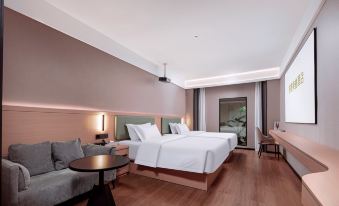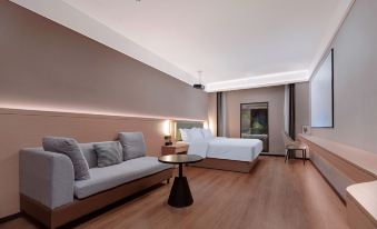 大堂布置充滿文化氣息。房間設施很新,智能馬桶還有加熱功能,真的太舒服了。隔音效果也不錯,晚上休息得特別好。酒店還提供免費健身室,對於愛運動的我來説太友好了。酒店周邊配套齊全,吃飯購物都很方便,性價比高。