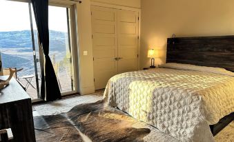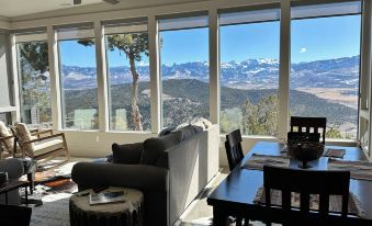 This place is a gem! It provides all the comforts needed to absorb the stunning views of the valley below and the mountains beyond, whether inside through its wall of windows or outside on the patio.