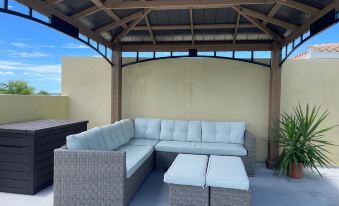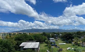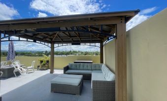 As your tour to the apartment continues you can now go up through the spiral staircase to the Mezanine level and open Air Terrace. We call this area the family room. It is also perfect as an office space for those working remotely. As a family room it has natural plants, comfortable loveseat and once you go out to terrace the Magnificent view to the Rain Forest Mountain awaits you or the perfect night sky for stargazing. We are located 15 miles from the rain forest and SJU International Airport.