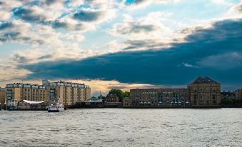 Located directly on the River Thames, a&o London Docklands Riverside offers a unique setting in a stylishly restored former harbour warehouse. It enjoys a quiet location in the leafy district of Rotherhithe and features its own boat pier with a complimentary shuttle service to Canary Wharf. The hotel offers spacious rooms, many of which include river views or private balconies. Guests can enjoy a 24-hour hotel bar serving drinks and snacks, as well as a round-the-clock reception and several conference rooms for business needs. The hotel is well connected to the city centre, major airports, the O₂ Arena, and other key destinations. A variety of room categories are available, catering to solo travellers, couples, families, and business guests alike.