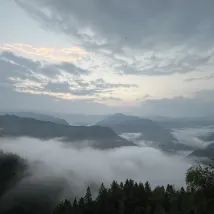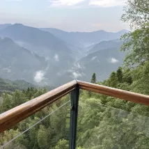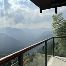 The room is very clean and bright. Most importantly, the view is great. You can watch the sunrise while lying on the bed. When I look out from the floor-to-ceiling windows, all I can see are green mountains.