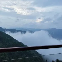 The owner was very responsive, the room was comfortable, and it was wonderful to sit on the balcony and watch the sea of clouds in the morning. I hope to see the sunrise next time I go. Just 50 meters up the path is the Kowloon Five Tigers Observation Deck. The terraced field lights close around 10:30 PM. Breakfast starts at 8:00 AM and includes noodles and rice, fried eggs, and pickled beans. The dog at the door is very well behaved.