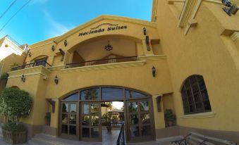 What are the check-in and check-out times at Hacienda Suites Loreto?