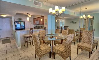 ➥ Dining Area – Glass-top table and seating for 6 for group meals