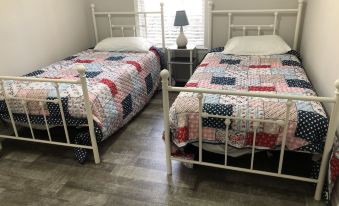 3 bedrooms: 2 single beds 1 queen bed and 1 king bed