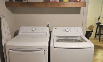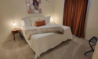 This house has 2 bedrooms, a king and a queen, each equipped with their own smart Tv. Free Wifi across the home, along with a work desk for those working from home. You'll have parking space in the private driveway as well as street parking. The house has many amenities to make your stay feel like a home away from home!