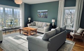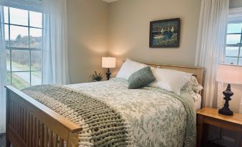 5 bedrooms: 2 single beds 3 queen beds and 1 king bed