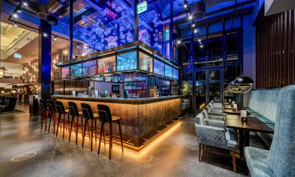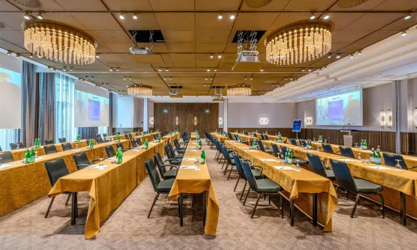 Modern 5-star-hotel, full air conditioned, located in the city centre between the famous Holsten gate and the music and congress hall. The hotel offers a panoramic view of the historical old town. Two restaurants and bars offering full service. Conference and boarding rooms available, walking distance to main station, 3km to highway, parking on-site. Tourist attractions and the shopping area are within walking distance. Pool and sauna.