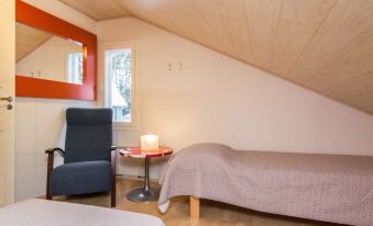 Gable apartment in a row house built in 2002. The living room/kitchen features a double bed, the bathroom has a WC and shower, and the sauna is equipped with an electric sauna stove. There is a kettle grill on the back terrace.