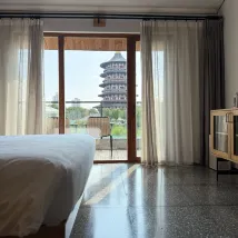 The room was minimalist, very clean, and featured comfortable bedding. However, the absolute standout feature is the incredible view – it's worth staying just for that! The staff were extremely helpful and accommodating. The location is also very convenient for visiting nearby attractions. Luoyang has been experiencing scorching temperatures recently, making it difficult to venture out during the day. Consequently, we didn't have a chance to explore the city's attractions. Fortunately, we could still enjoy a breathtaking view from our balcony, which somewhat made up for the missed opportunities.