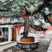 The location is fantastic, right next to Mingtang and Tiantang, making it incredibly convenient. You can even see Tiantang directly from the hotel. The ambiance is elegant and serene; each room is designed to be separate, ensuring a great sense of privacy. It's built around large trees, offering a wonderful connection to nature. The service was very attentive and detailed, with thorough explanations. Breakfast was exquisite and featured local specialties, which I really enjoyed.