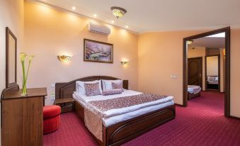 Sehr freundliches hilfsbereites Personal und toller Service. Das Hotel ist sehr sauber, hat große geräumige Zimmer und ein tolles Buffet zum Frühstück. Die Betten sind sehr bequem, es gibt einen Minikühlschrank im Zimmer, ebenso eine Klimaanlage und einen Safe. Dieses Hotel liegt nur wenige Minuten vom Bahnhof und Busbahnhof entfernt und bis zur Innenstadt kann man schön gemütlich in knapp 30 minuten laufen und dabei schon eine Kirche und den Ivan Franko Park sehen. Es ist zentral gelegen und es gibt auch in der Umgebung mehrere Geschäfte.