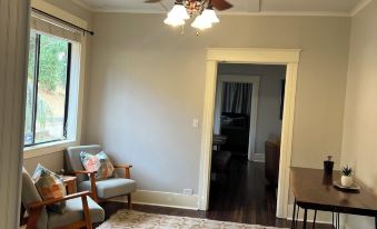 * Please note: there are stairs leading down to the front door, so it may not be ideal for guests with mobility concerns. Alternatively you can access the front door through the grass/front lawn. Well behaved dogs welcome.About pets:Pets allowed: dogs (limit 1 total).About checkOut:Check out before 11:00 AM.About children:Children allowed: ages 0-17.About checkIn:Check in after 4:00 PM.About smoking:Smoking is not permitted.About minBookingAge:Minimum age to rent: 18.About events:No events allowed.