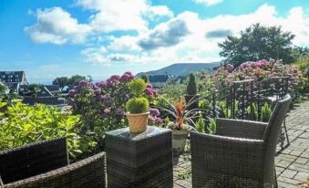 Take in the views from a terrace and a garden.