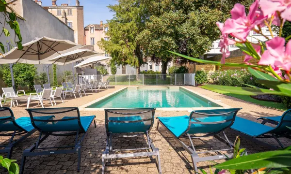 Hôtel de charme superbe parfaitement situé dans le centre-ville de Mâcon. Les chambres sont belles, propres, spacieuses, confortables et bien décorées. Le petit-déjeuner est excellent avec un choix très important. Et enfin cerise sur le gâteau : la piscine ! Elle est assez grande et située au calme dans un jardin à l'arrière de l'hôtel. Bref : tout est parfait ici !