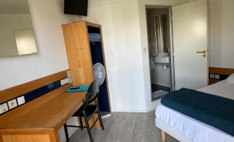 La chambre est correct, relativement propre mais par contre c’est honteux car en pleine hiver, 10 degrés dans une chambre en pleine hiver c’est honteux, il y a bien un radiateur qui ne fonctionne pas. Mes filles ont étaient gelée toute la nuit et pas d’eau chaude!! Inadmissible à fuir et pas de personnel réception