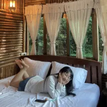 The accommodation is a bamboo house with a fan room. We stayed in September. It was not hot, but cool with a light rain. It is not far from the accommodation to the shop (600 meters), but there is a slope of about 20-30 degrees, so it is slippery and slippery. The room can accommodate four people, but only three people stayed. The owner gave free rice porridge and soft-boiled eggs in the morning. It was delicious and plentiful. There is also coffee and cocoa that you can make yourself. The owner is talkative and listens to any recommendations. There were some insects since it is next to the forest, but there were no mosquitoes in the room. In front of the room, there is a small balcony where you can sit and relax. The bathroom is separate from the room, but nearby (1 meter from the room). There is a private bathroom only for the room. The bathroom does not smell bad. Behind the house, there are Himalayan cherry trees that bloom in mid-February.