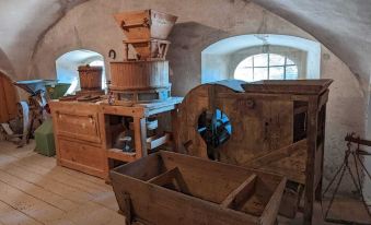 The two apartments in the 16th century vaulted Dower House at Ottmanach have recently been restored and modernised with new bathrooms and kitchens. They also have a washing machine and music player and TVs. Both are now decorated with antique Austrian furniture, carpets and clocks with local paintings of the the mountains and churches.