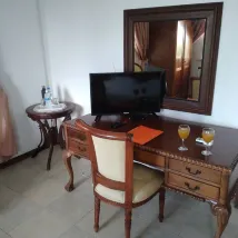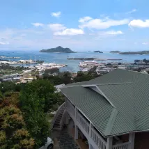 We (family of 5) stayed on our last night on Seychelles, after spending 2 weeks on Praslin. We wanted to have a full day on Mahe before flying back to Europe. We were so positively impressed about the quiet location, the impressive classic architecture of the mansion and the newly renovated spacious rooms! The bathrooms are large, spotless and modern. The air conditioning in the rooms, which are fitted with high quality antique furniture, works perfectly. The food, which the owner takes pride in personally co-producing, is high quality creole cuisine. But none of these highlights matches the incredible view that this place has over the bay of Mahé. If you have a chance to see the sunrise, do so, it is truly breathtaking!