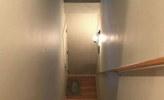 Murphy bed) comfy mattress and linens faces a 50” flat screen TV and a host of TV apps (Netflix, Amazon Prime, Hulu, and many more) and electric fireplace for both additional heating or ambiance with multiple color settings. Enjoy curling up with a good book and fuzzy blanket in the comfortable, over-sized, swivel chair. There is also a four person pub table for eating, game playing or work station (free, reliable WiFi). The wall bed is a high quality made Murphy queen size bed with hotel quality semi firm mattress and bedding. Keep it down or put it away during your stay for additional space. The bathroom is well appointed with unique and aesthetically pleasing high quality tile thoroughly and vessel sink. Large closet organizer with plenty of coat hangers for your use.