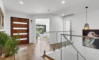 The nearest airport is Moruya Airport, located about about 17 mins from hotel by car (18.5 km) away.How do I get to Chic 4-bed Beach House With Sea Views from the nearest airport?