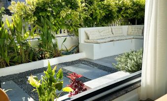 The private garden is one of the best features of our home. It’s the perfect spot to relax or enjoy a meal with the grill provided for a true Mediterranean outdoor dining experience.