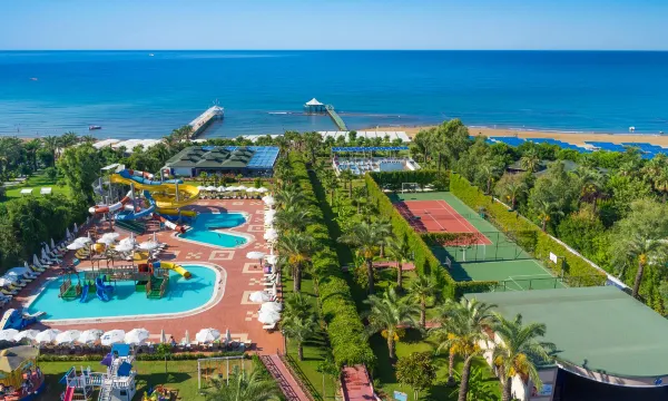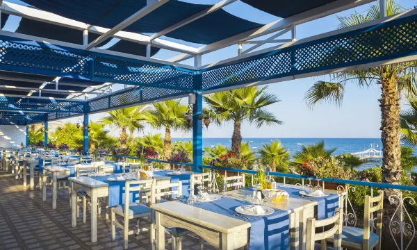 Location: The hotel is ideally situated near a clean, sandy beach with a pier, offering easy access to Side via a minibus. The location provides a relaxing atmosphere, yet remains convenient to nearby shops and markets.