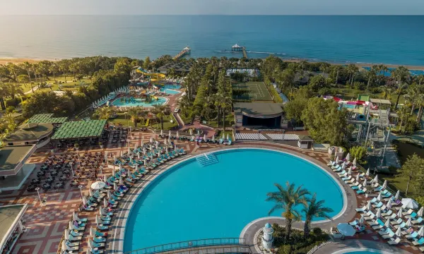 This was our second stay in Turkey, but our first at this hotel. We were with two children, ages 7 and 12. The hotel was very clean, with plenty of activities for children during the day and evenings. The food was tasty, but a bit repetitive. The hotel is close to a sandy beach with a pier. The beach was clean and beautiful. The hotel's location was quite good, but Side is about 10 km away. The district in which it is located is the hotel district. There are few restaurants near the hotel, but there are markets. The hotel staff is very good, helpful, and professional. The drinks at the bars were very good. The hotel pools were clean, but there was a problem with getting sunbeds. To get a sunbed by the large pool, we sometimes had to get up at 5 a.m. because by 8 a.m., they were already taken. It's worth booking tours of the area. Overall, I highly recommend this hotel. Our experience, and our stay, were very positive.