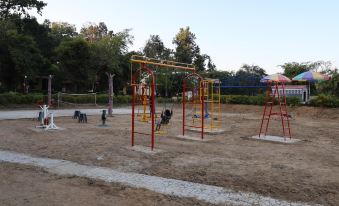 Excellent location. Whole place including rooms is well maintained. There are lot of activities to enjoy within the resort- swimming pool, badminton court, karaoke, open gym——-. They serve tasty vegetarian food. Staff is courteous and friendly. Khatia gate is just 15-20 minutes drive from the resort.