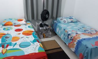 3 bedrooms: 3 bunk beds 4 single beds and 1 double bed